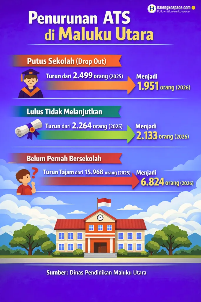 Putus Sekolah (Drop Out): Turun dari 2.499 orang (2025) menjadi 1.951 orang (2026).